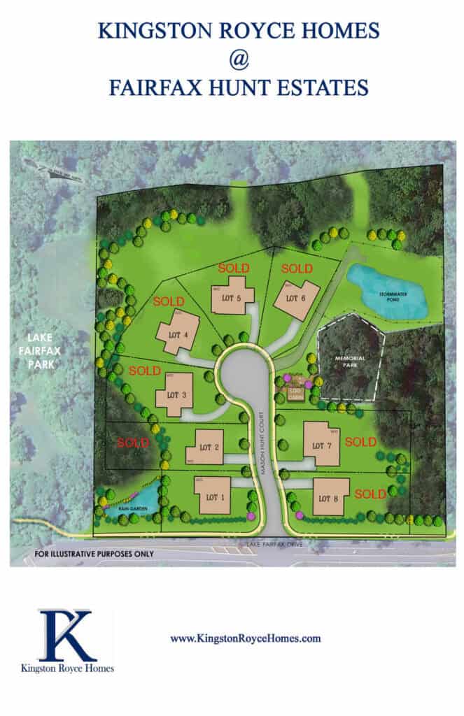 NOW SELLING!  A market rarity in the heart of Fairfax County!  Introducing Fairfax Hunt Estates, a private 8 lot subdivision adjacent to Lake Fairfax Park, built exclusively by Kingston Royce Homes.  Lake Fairfax Park provides 476 acres of beautiful parkland with a picturesque 18 acre lake.  The park offers a wide range of activities such as a water park, campgrounds, skate park, hiking & biking trails, pedal boats, kayaks, fishing, and athletic fields.  Fairfax Hunt Estates offers the convenience of shopping, dining, and entertainment with easy access to Routes 7, the Dulles Toll Road, the Fairfax County Parkway, Reston Town Center & Great Falls Park.  These homesites won’t last long.  Customize your dream home today!